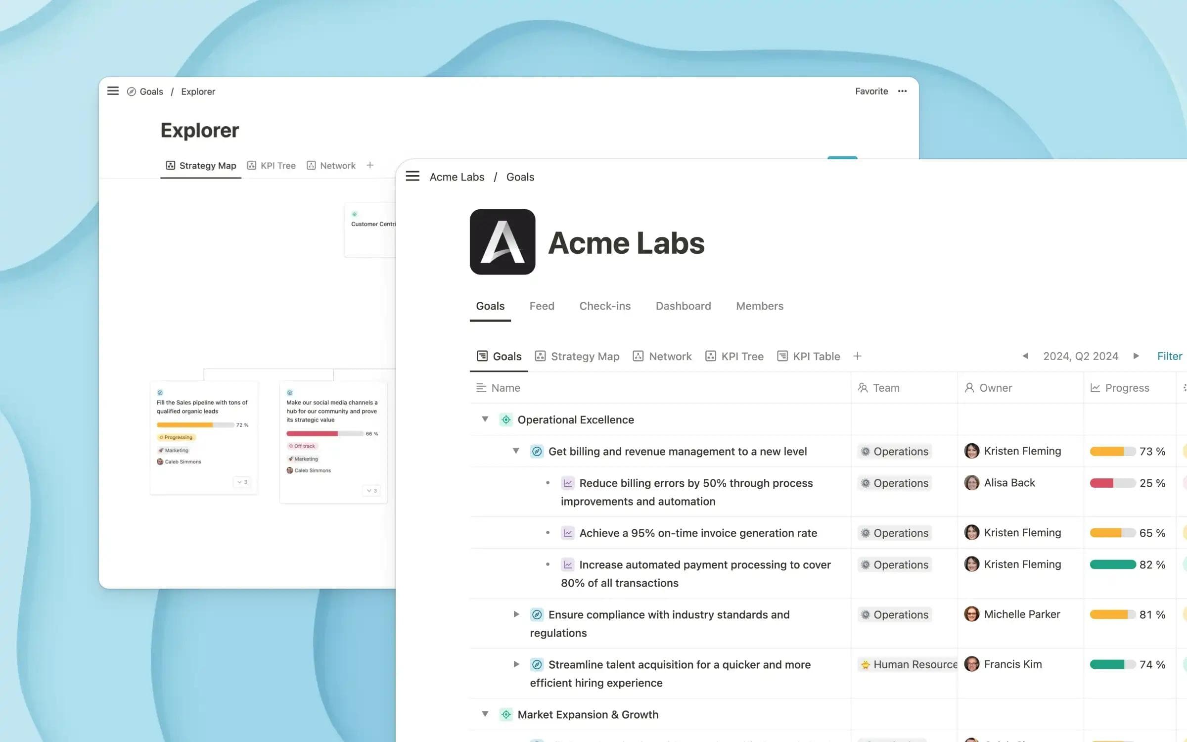 Quantive's features are focused on enhancing an organization's ability to adjust strategies and goals dynamically in response to evolving market conditions. Key features include: